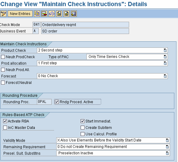 Once the Maintain Check Instructions screen is set for rounding, global ATP is ready to be used for the rounding functionality using rounding capabilities in SAP SCM.