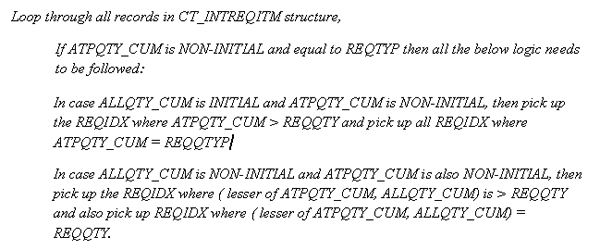 - For all the REQIDX fields where ATPQTY_CUM = REQQTYP or (lesser of ATPQTY_CUM, ALLQTY_CUM) = REQQTY as applicable, round down CNFQTY. This is an instance in which the stock on hand or projected receipts are less than or equal to the requested quantity. In such an instance it would be preferable to round down the confirmed quantity.