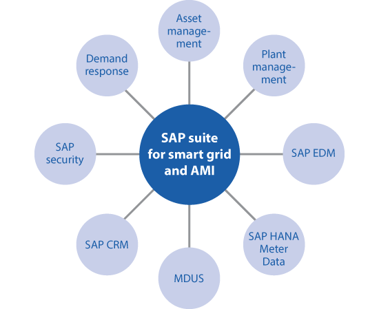 Thus, the SAP Business Suite provides an ideal platform offering integration with smart grid, AMI, and smart meter. The major components include: