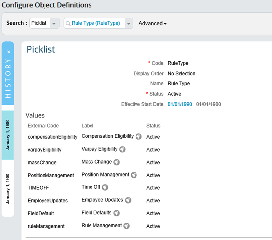 The Rule Type in Figure 6 comes delivered with pre-defined values that help implementations to categorize their rules. To create additional values (or to maintain existing ones), go to the Configure Object Definitions screen in Administration Tools. Once in this screen, choose Picklists from the Search field drop-down options and then select Rule Type. Maintaining the Rule Type picklist allows you to customize as desired (as shown in Figure 3). Rule Types can be translated into multiple languages if so desired.