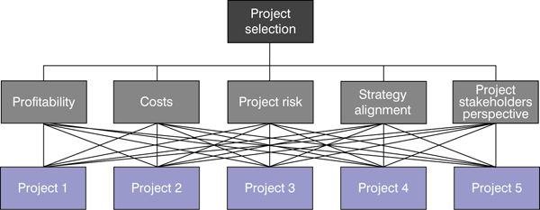This is a typical decision problem, and AHP seems to be the perfect tool to solve it. Figure 13 shows a sample decision tree.