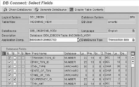 This newly created data source is now available for data extraction from the external database using DB connect. This DataSource will bring data in the full update mode. You will be able to make it delta capable after following the third step, which is in part 2 of this article.