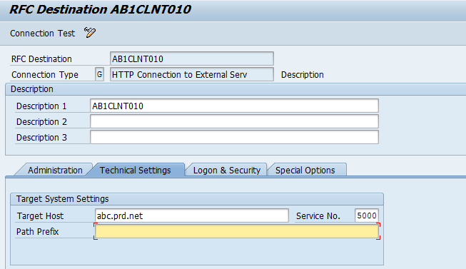 In the case of a BAdI, as shown in Figure 2, use Connection Type 3. In the case of a web service, as shown in Figure 3, use Connection Type G.