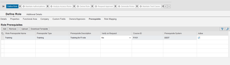 Repeat this step for each prerequisite or training course that needs to be checked in SAP Access Control.