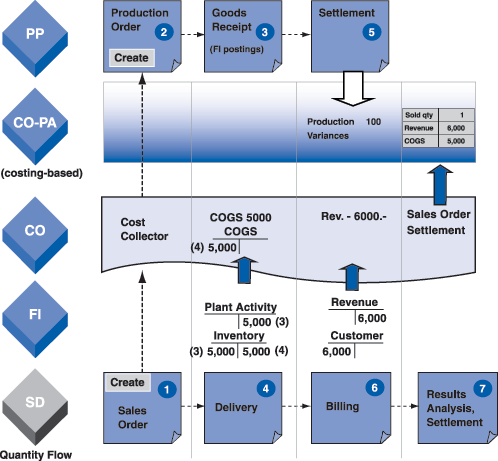 - During production order settlement, all production costs are transferred from the production order to the sales order. This is a movement of costs only within the controlling module. No financial accounting entries are posted.