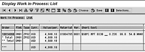 Screenprint of the caller's R/3 4.0B system's standard WIP calculation report