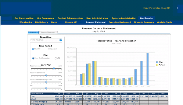 Publishing dashboards to SAP NetWeaver Portal is one of the most common ways that dashboards are made available to consumers across an enterprise. Because dashboards are starting to play an increasingly important role in organizations’ enterprise performance management (EPM) strategies, access to these dashboards is a critical consideration. Figure 1 shows an SAP NetWeaver Portal with embedded Xcelsius dashboards.