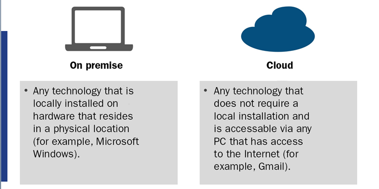 Many of you are already familiar with the distinction between on premise and cloud, but I’ve included a brief overview in Figure 3 as a simple reference. On premise is software that is locally installed on a PC (like Microsoft Windows, for example). Cloud-based technologies do not require any local installation; they simply require access to the Internet (like Gmail). Currently there are four active models in the marketplace for SAP deployments.