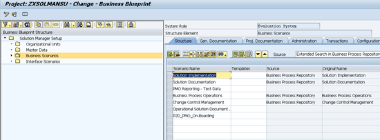 In transaction SOLAR02, a secondary structure is made available. Unlike the predefined scenario, process, step hierarchy for the business processes in transaction SOLAR01, the configuration structure is very free form. Selecting the Structure tab in transaction SOLAR02 (Figure 1) reveals a different view from what you see in the Structure tab in transaction SOLAR01 (Figure 2).