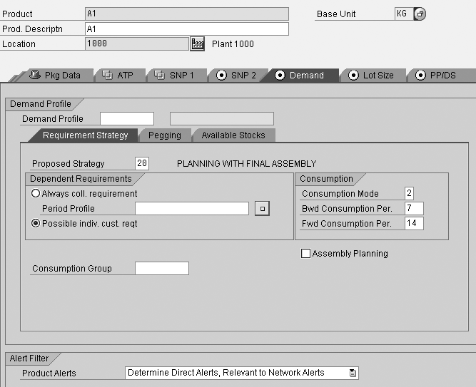 Use the Demand tab to view the Requirement Strategy profile