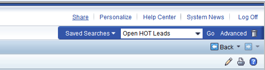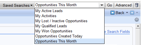 In addition, saved searches are accessible from many screens within the CRM WebClient UI. In the upper-right section of most SAP CRM screens, a pull-down list of saved searches is available (Figure 3).