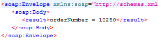 Figure 2. Depending on the value of the order number, you get respective replies from the integration flow. If your order number is 10250, the reply should look similar to