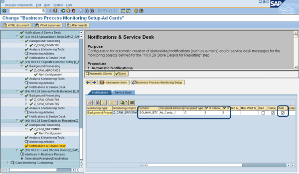 Scroll down on the left to the node (45) 10.0.29 Store Details for Reporting [Z_SAP_CRM_BPM], for example (Figure 13). (The name of the node differs based on your business processes that are defined and used.) On the right, select the type of monitoring. In this example, you select Background Processing.
