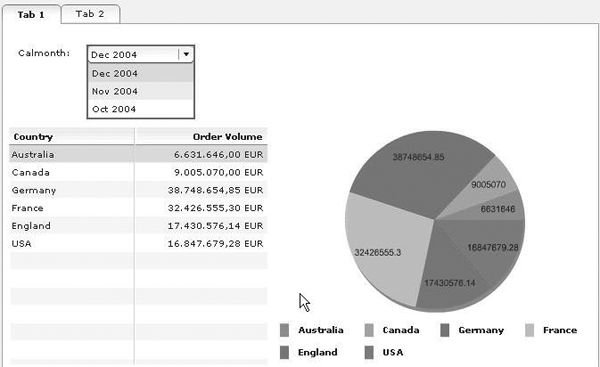 The Storyboard in Figure 3 generates Web output such as those in Figures 4 and 5. Designers can use sources of data from SAP CRM, ECC, SAP NetWeaver BI or many legacy systems exposed to the portal using industry-standard interfaces.