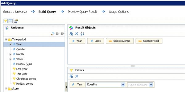 SAP BusinessObjects Dashboards query panel
