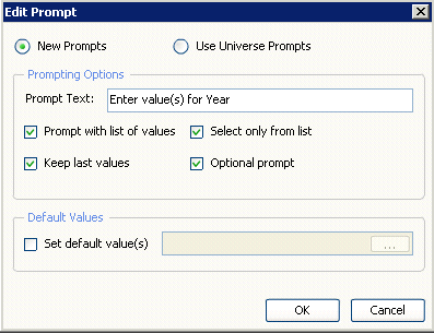Step 8. In addition, I created a filter based on the dimension Year in the Filters panel and defined a prompt to allow the user to provide an input to the filter at runtime for the SAP BusinessObjects Dashboards object (Figure 4). You are defining the prompt to be an optional prompt so that in the initial run of the SAP BusinessObjects Dashboards, the data being displayed shows all values and the user can then filter down on the data as needed.