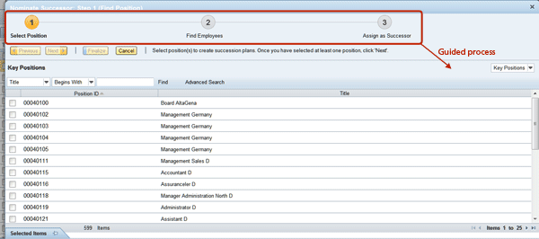 3. Succession Planning: In the Succession Planning module of SAP Talent Visualization, a guided process is available to conduct succession planning (Figure 1). This guided process tells you what is accomplished so far and what is required to be completed. You can use Succession Planning to: