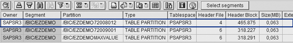 When you have finished, go to transaction ST04 to check that all 13 partitions from 001/2008 to 001/2009 appear (Figure 8).