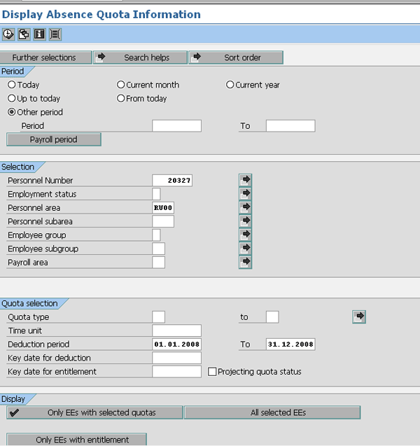Consider this common problem. An employee is eligible for 25 days annual leave from 01/01/08 until 12/31/08 plus five days over and above the leave entitlement (known as a negative quota). When the employee goes on annual leave, SAP ERP HCM should allow him to take 25 days plus five days over and above his entitlement, which is adjusted with the following year’s quota. So what do you do if the employee uses the five days over and above his entitlement and is eligible for only 20 days of annual leave in 2009 (from 01/01/09 to 12/31/09)?