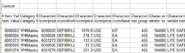 You can now upload a CSV file for the supplier catalog, similar to the upload for the master catalog. However, the file now has a content section with the item information to be uploaded (Figure 4). The content can be uploaded with the model section of the file described in Figure 2 or separately. You need to use the readily available International Organization for Standardization (ISO) codes for the unit of measurements in the upload file as these are the standardized units used for the data upload. You can search online for these if they are not readily available.