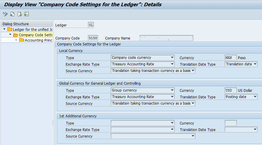 Currency type assignment to company code in leading ledger 0L