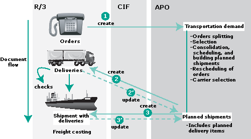 deliveries and shipment documents in R/3 for execution and freight costing. The system maps the information from APO, such