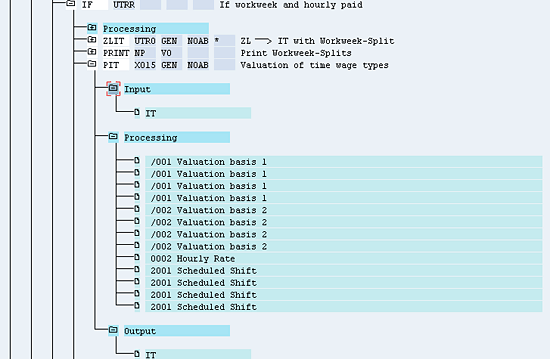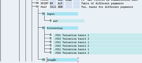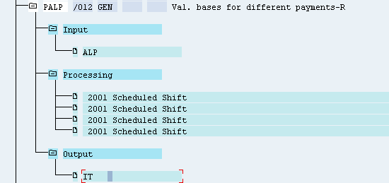 Function PALP imports the ALP table. For each time wage type (record) that has an ALP position on it, function PALP looks for the same position in table V_528B_C for the alternate hourly rate and checks the hourly rate of the position based on the pay-scale data via PCR X012. PCR X012, in turn, calls the PCRs X112, X212, and X312.