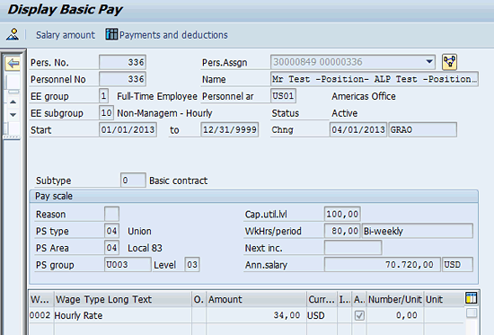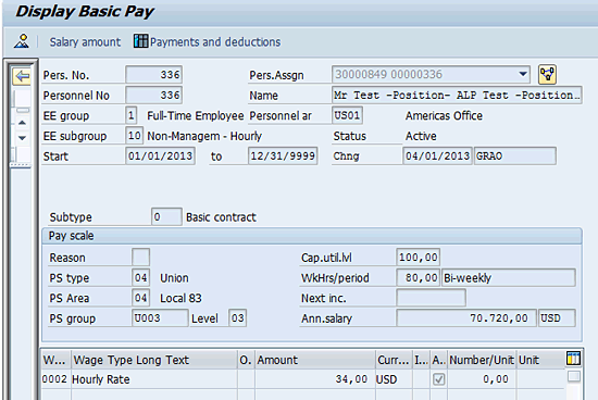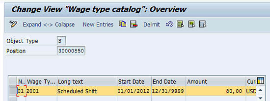This primary position assignment is used to derive the employees’ regular hourly rate, which is applicable for paying the regular working hours, overtime, or absences. Unless employees record their time against some other position (called an alternate position), they are paid based on the primary position rate. When employees record their time data against an alternate position, they have to be paid accordingly. Because each position carries a different hourly rate, the time records along with the position numbers have to be recorded using the time sheet or directly in the time management infotypes.