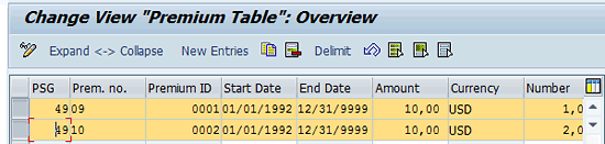 The premiums are configured in table T510P as shown in Figure 34.