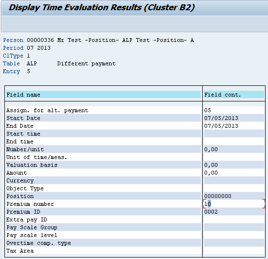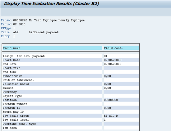 When the time valuation is run using transaction code PT60, the time records and the pay-scale data are stored in the alternate payment (ALP) table in the time evaluation results, cluster B2 (Figure 5).
