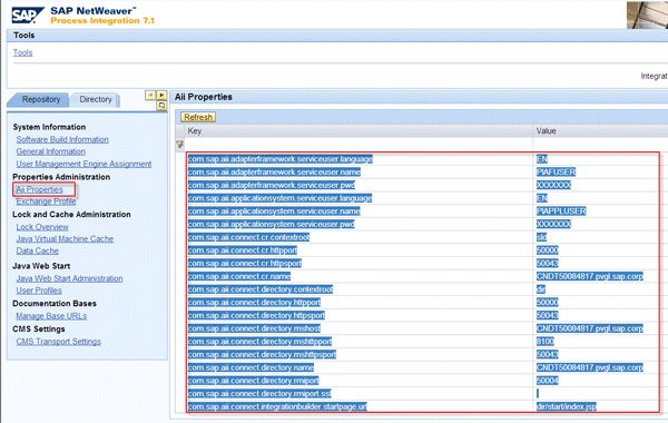 During runtime, the system accesses the aii.properties that contain the same parameters and values as in the profile. To avoid a runtime error, you need to add the file aii.properties to the project file directory. In SAP NetWeaver PI 7.1x, you can obtain the content of the properties via the URL