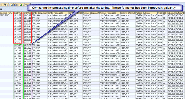 Send the messages again to SAP NetWeaver PI. As you can see in transaction SXMB_MONI, now the messages processing time reduces from tens of minutes to seconds (Figure 22).