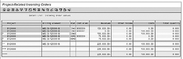 The incoming orders functionality consists of transactions CJA1 and CJA2. CJA2 processes a single project and CJA1 processes several projects at a time. The transactions calculate the revenue values needed for order book and backlog as well as the associated costs, which can be used to report expected future profits. I will concentrate on the revenue values.