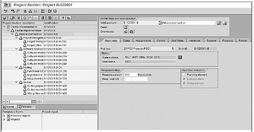 Project status on Basic data tab in Project Builder (transaction CJ20N)