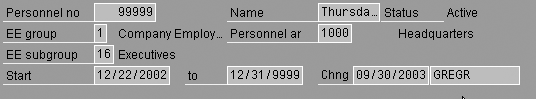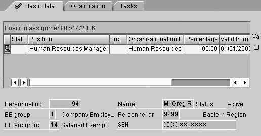 In the standard delivered SAP HR application, the infotype headers come with many data elements. In a US-oriented system, this includes the SSN. In other countries, the SSN equivalent is also part of the standard-delivered header data elements (field PERID). You can customize these headers according to a company’s specific needs. Figure 1 shows the standard delivered header. Listing the information in the header exposes the personal data infotype 0002 to any user with any access, including display only.