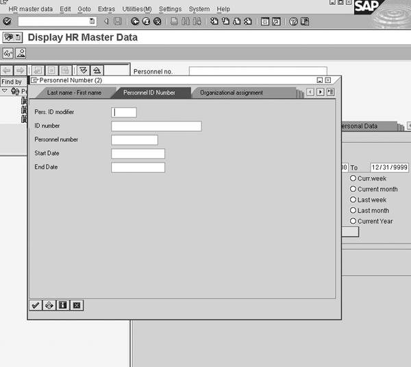 Standard search help for finding a person (PERNR). Note the ID number field; this is the SSN in US implementations.