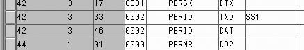 In Figure 7, the header modifier links to location information to display the field header. It also specifies the infotype and the fields from the infotype. To remove the SSN from the header, simply delete the related field entries for the header modifier. In this example, I deleted both the DAT (data field) and the TXD (text ID) lines from the header modifier numbers 14 and 42 from the header definition. To delete the PERID entry, select the appropriate line in the table and click on the delete icon or press Shift-F2.