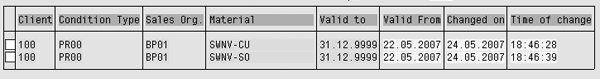 values so that the system tracks any changes to condition type PR00 in sales org BP01.