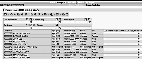These tools do not replace a full-scale SAS E-Mining implementation (BW does not deliver neural network technology, for example), but for many companies they offer a practical means to gather insight. The BW data-mining tools are independent of, but tightly integrated with, mySAP CRM 4.0. This combination allows you to take immediate action on the data-mining results without building a separate interface. You do not need mySAP CRM 4.0 to use these tools, however.