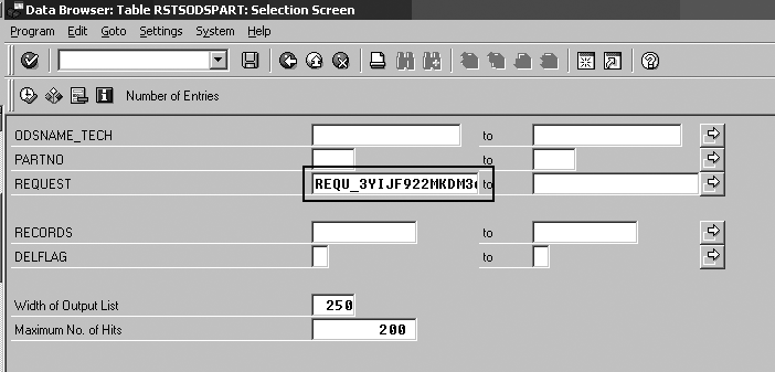 Step 2. Find the PSA table. Given a request identifier, use transaction SE16 to search through table RSTSODSPART (Figure 2). Paste your request identifier into the REQUEST field (Figure 3) and click on the execute icon or press F8. Figure 4 shows the resulting data records.