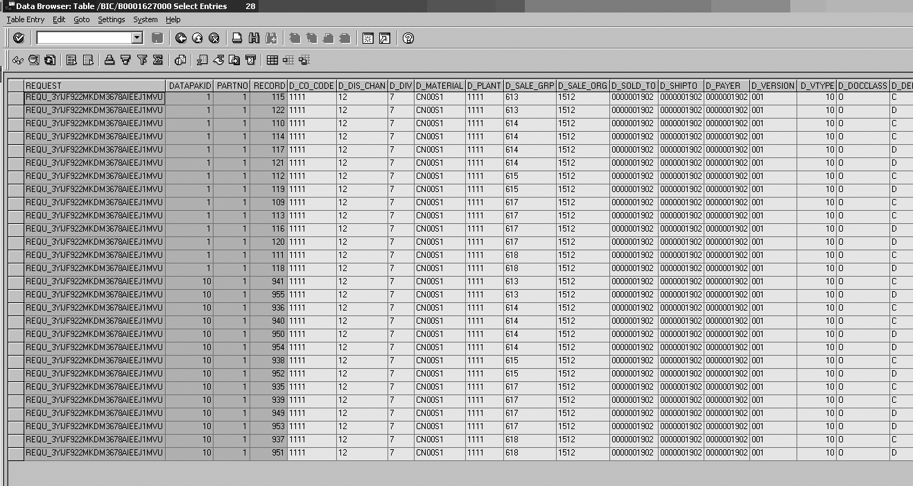 This tells you that the transparent table /BIC/B0001627000 contains request REQU_3YIJF922MKDM3678AIEEJ1MVU. This is the PSA’s transparent table.
