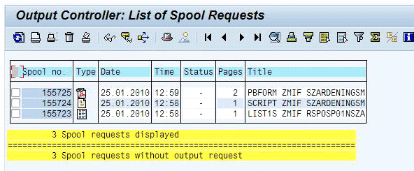 With transaction SP01, you can look at the generated spool requests of your SAP system. Figure 3 shows the various types of spool requests: SAP Interactive Forms, SAPscript, and ABAP lists.