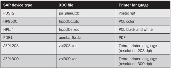 As mentioned earlier, SAP device types and Adobe XDC files are comparable. Both consist of the necessary definitions to generate the appropriate PDL. However, since the generation for SAP Interactive Forms, SAPscript, and Smart Forms is carried out from completely different components, there is one further overlap.