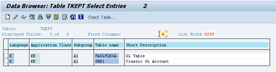 To create G/L account characteristics, you need to add tables SKB1 (in the classic G/L) or FAGLFLEXA (in the SAP General Ledger) to the list of table of origin available for building CO-PA characteristics. Add the following entries in table TKEDP and TKEPT. Use transaction code SE16 to access the tables TKEDP (Figure 1) and TKEPT (Figure 2). To create new entries click the create icon