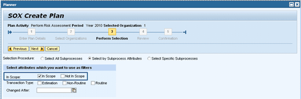 Step 3. Perform Selection. Set the radio button to Select by Subprocess Attributes and select the check box In Scope to select all subprocesses tied to the selected organizations that were set in scope during the materiality analysis (Figure 8).