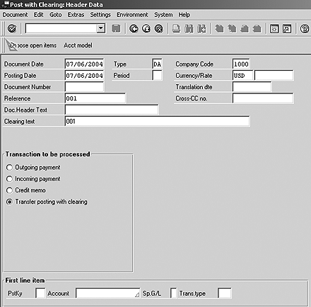 You can use payment advice numbers that are generated when an assignment is saved for future use, and you can clear open items directly from this transaction. If an assignment is unbalanced (i.e., you want to clear a number of transactions that don't balance to zero), this transaction launches F-30 (transfer with clearing) to enable the clearing process. Now I'll use two scenarios to introduce this functionality.