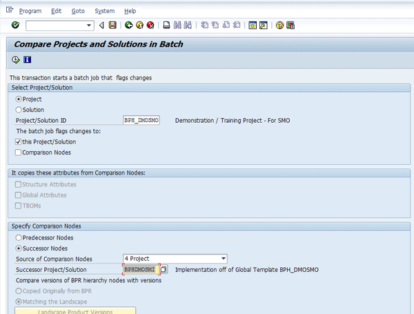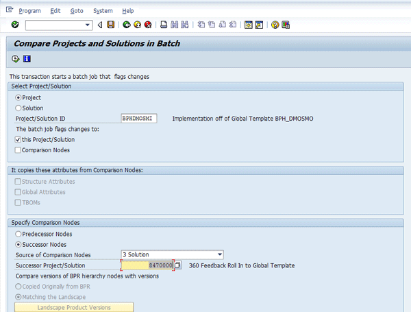 Run transaction SA_PROJECT_UPGRADE against the BPHDMOSMI project with the successor and the solution identified (Figure 4).