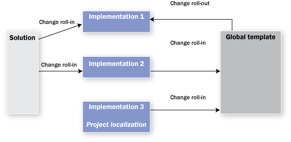 Let’s look at an example: You have multiple projects in the works at various stages of completion. You’ve identified through process design sessions that there are one or more processes being enhanced as part of localization efforts that are a good fit for the enterprise as a whole and you’d like to make them part of the global template.