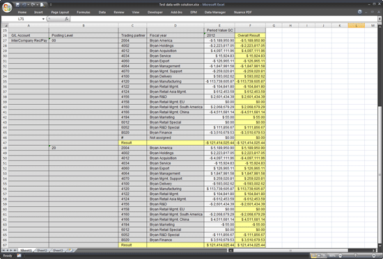 The report in Figure 2 shows all elimination postings (PL 20) with all trading partners. In the report, the balances of the PL 0 and PL 20 data are exactly matched.