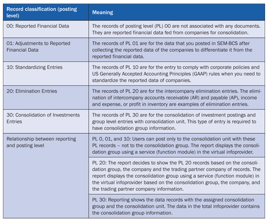 Table 4 explains the terminology of posting levels in SEM-BCS to help you understand the solution better. A posting level is a two-digit number classifying journal/automatic entries in the SEM-BCS system.